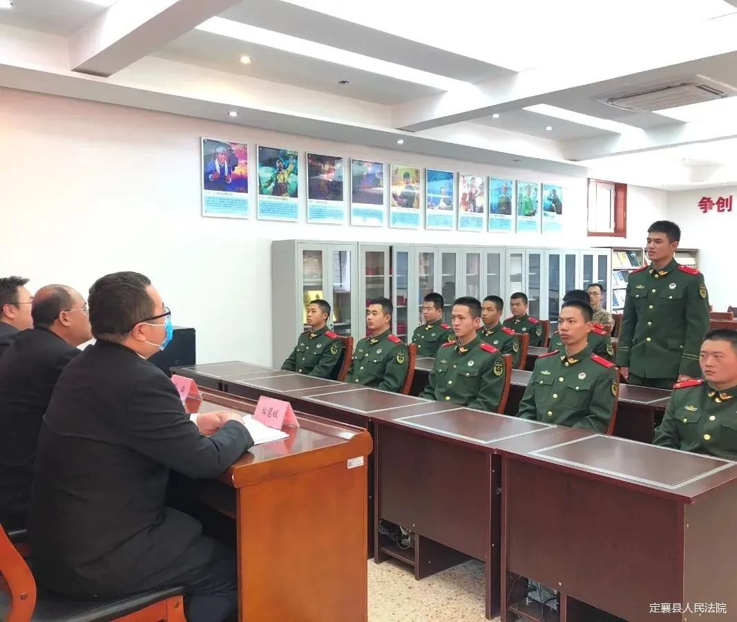 为切实提高部队官兵依法维权的意识和能力,近日,定襄法院派出法官干警前往定襄县武警中队开展“送法进军营”活动,为武警官兵们送去法律关怀,提供司法服务。