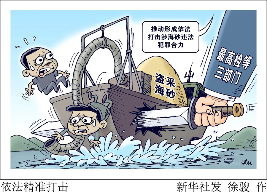 新华社北京6月8日电(记者冯家顺)记者8日从最高人民检察院获悉,最高人民法院、最高人民检察院、中国海警局联合发布依法打击涉海砂违法犯罪座谈会纪要,旨在统一执法司法尺度,实现依法精准打击,有力保障海洋生态环境,维护海上安全稳定。