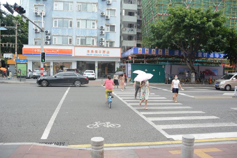 图为8月1日记者拍摄的厦门体育路与育秀东路交叉口的非机动车与行人分流的斑马线。新华社记者颜之宏 摄