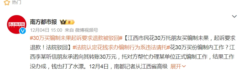 #30万买编制未果起诉要求退款被驳回#