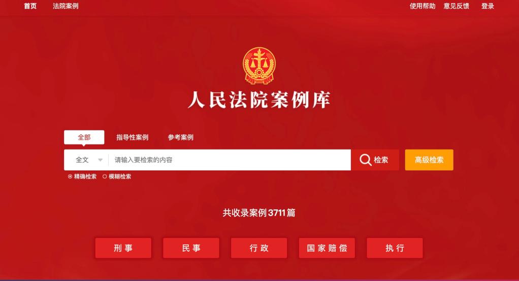 人民法院案例库网页截图。