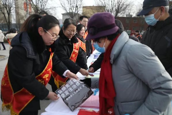本次“宪法宣传周”以“学习宣传贯彻习近平法治思想,推动宪法深入人心”为主题。活动现场,检察干警紧扣宣传主题,热情地向过往群众发放普法宣传资料,面对面、“零距离”为群众答疑解惑,让法律知识从“纸上”落到“实处”。