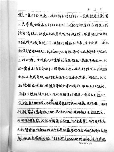 刘吉强还撰写了一封控告信。控告信里,他描述了7天梦魇般的经历:办案人员用脚踢他的脸,用手铐把他吊挂在铁管做的横梁上拳打脚踢,用电棍击打身体的各部位。