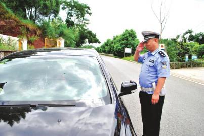 8 月 10 日中午,骄阳似火。记者见到邓仁军时,他正在G210国道上麻柳段进行道路交通安全巡查,黝黑的脸庞、憨厚的笑容,身上蓝色的警服已经湿透。他站在马路边,时不时对路过的车辆喊一声:慢点,前面弯多,注意安全!