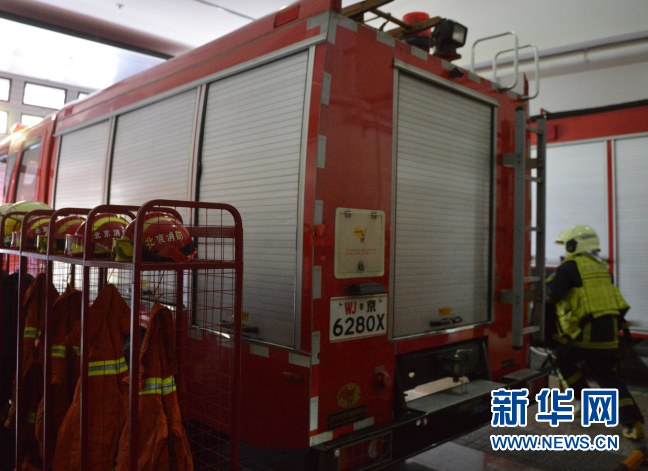 当日有警情,消防员快速穿上消防服并准备上车赶赴救援现场。(新华网 郭小天/摄)