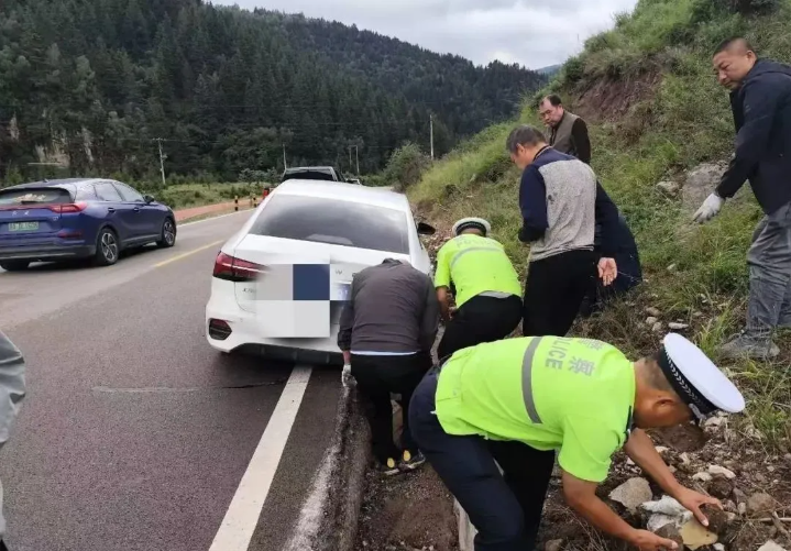 8月10日16时许,正值周六,宁武县芦芽山景区车水马龙、游人如织。宁武县公安局交警大队辅警白涛在悬空村附近巡逻时,发现一辆白色轿车右侧掉到排水沟里,几位游客站在一旁,满脸焦急,随即上前了解情况。得知严先生一行四人从广东自驾到山西旅游,慕名来到芦芽山,因欣赏沿途美景,驾驶不慎,车辆右侧掉到排水沟无法动弹。白涛立即向景区安保指挥部汇报情况,指挥部迅速指派附近巡防民辅警前往支援,并指令联动景区工作人员共同协助游客脱困。巡防民辅警和景区工作人员齐心协力、互相配合,边捡石头垫车,边喊口号推车。经过几轮尝试,车子一点点挪动,二十分钟后,终于将车子从排水沟里推出。此时,民辅警和景区工作人员已是满头大汗、浑身湿透,手上衣服上沾满泥巴。严先生一行不停地表达着感激之情,白涛同志告诉严先生不要在意,这是宁武公安在景区的日常工作,每天都会帮助很多受困游客。严先生回到广东后多次电话致谢,时常想起在宁武的美好旅程,他希望把宁武公安民警忠诚履职、暖心助民的精神和山西人民淳朴厚道的品质让更多人知道。8月16日,他通过忻州公安便民服务平台发出了感谢信。