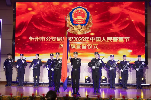 仪式在庄重的向警旗宣誓仪式中拉开序幕,迎警旗、全体起立、庄严宣誓,铮铮誓言响彻会场,彰显着忻州公安对党忠诚、服务人民、执法公正、纪律严明的坚定信念。