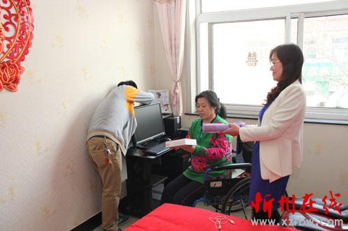 4月12日,五台县昌升科技发展有限公司的姚香平带领员工,在县城西米市街社区领导的陪同下,再一次走进了类风湿关节炎患者师建华的家中,为她修电脑,并赠送了鼠标、雨伞等生活用品。多年来,姚香平经常无条件上门给社区居民维修、更换电脑硬件、安装程序软件,赢得了社区居民的一致称赞与好评。(金俊贤 郑光 摄)