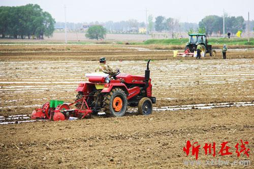 5月2日,原平市东营村民正在临滹沱河的农田里播种玉米。昔日盐碱滩,如今米粮川。原平市加大滹沱河水治理,确保水流畅通的基础上,两岸盐碱地科学改良效果显著,特色水稻、蔬菜种植打出了品牌,大田玉米产量提升,增加了两岸农民的收入。(吉建平 摄)
