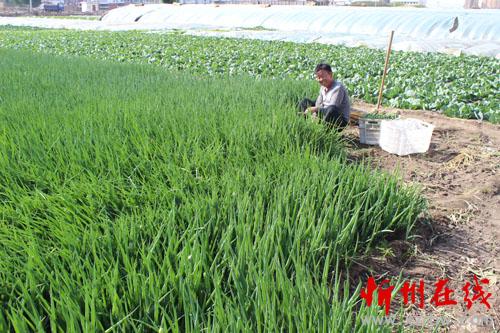5月4日,原平市新原乡解放街村菜农正在从菜园中起菜。小葱、生菜、西芹等当地鲜菜陆续上市,既让市民吃上新鲜蔬菜,又平抑了菜价,菜农也增加了收入。(曹申义 摄)