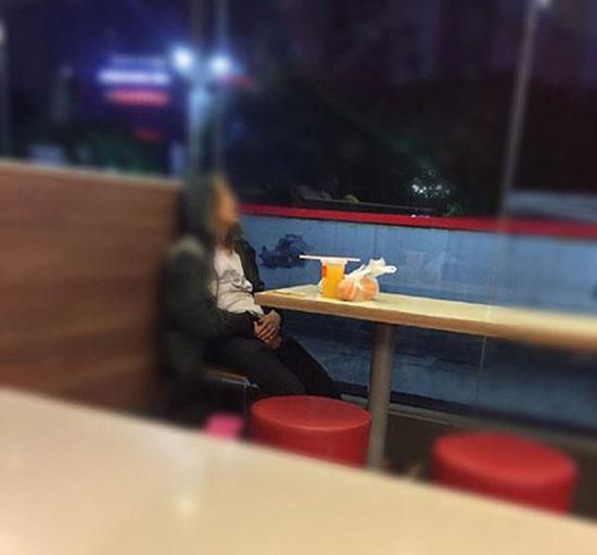 5月8日凌晨两点半,外面下着大雨,一网友在重庆某快餐店里,看到一个拾荒老婆婆睡着了,之后陆续有三个男生过来在老婆婆身前的桌上放了汉堡、橙汁、橘子、薯条等食物。这名网友将他所见之事发至微博,这条微博获得了众多网友的转发,人们纷纷为此暖心之举点赞。