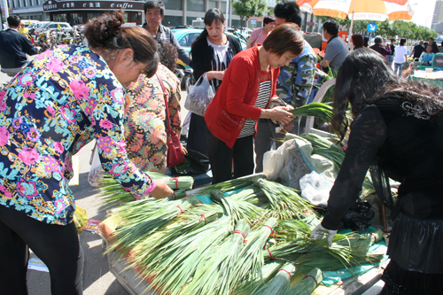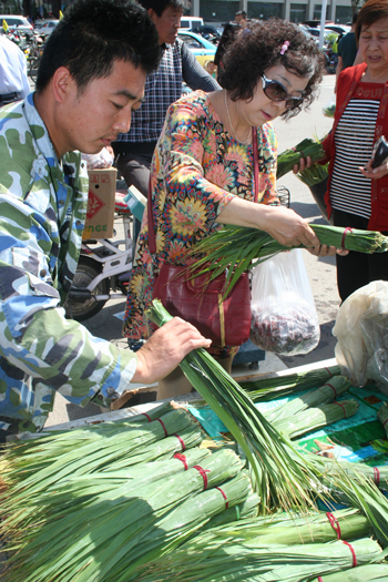 5月29日,随着端午节的临近,原平市子干乡张家庄村农民正在集贸市场卖粽叶,很受群众青睐正在挑选。该乡生产的粽叶成为远近闻名的品牌产品和用户的香饽饽。该市大力发展“一乡一业”“一村一品”如今成为了农民致富的增长点。(赵春晓 摄)