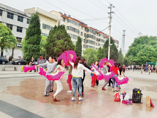 繁峙县充分发挥乡村文化阵地作用,不定期举办群众喜闻乐见的文体活动,不断丰富农民群众的业余文化生活,达到弘扬现代文化,摒除恶习的目的。图为社区居民正在习练扇子舞。(乔伟 摄)