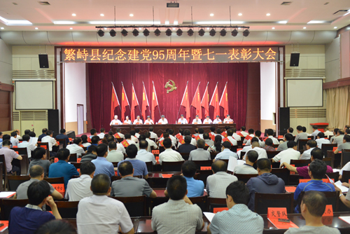 在建党九十五周年来临之际,6月30日上午,繁峙县专门召开建党九十五周年暨“七一”表彰大会,隆重对条条战线涌现出来沙国平、张宏伟、刘成等100名优秀党员,李全银、韩春芳等48名优秀党务工作者,繁城镇北城街党总支、笔峰村党支部等60个优秀基层组织进行了表彰。