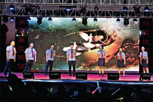 这场以“颂歌献给党,共圆中国梦”为主题的文艺晚会,是保安押运人精心组织,自编、自导、自演的一台节目,就像该公司党委书记陈志平所说:“这场文艺晚会是我们保安押运人向党95岁华诞献上的颂歌。”6月29日第一场晚会于晚8时正式上演,晚上7时便有观众陆续来到演出现场。第一场晚会就让观众大呼过瘾,节目形式多样,有小合唱、独唱、配乐诗朗诵、舞蹈、双簧、小品、服装秀等。其中舞蹈《映山红》、男生独唱《红旗飘飘》、电声乐队《闪闪的红星》歌曲串烧等用不同的艺术形式表现了保安押运人对党和祖国的热爱之情,感染了现场的观众;而双簧表演《文武双全》将晚会现场气氛推向高潮,两位表演者夸张的表情、搞笑的扮相引得观众连连叫好。