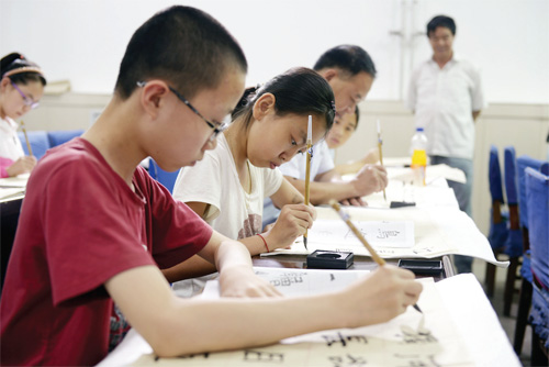 7 月17 日,在静乐县青少年文化活动中心,孩子们正在认真练习书法。进入暑期以来,该县兴趣特长班又火热起来,学生们利用暑假时间投身于各自的兴趣爱好之中,让自己的假期变得更为充实、更有意义。(闫晓梅 摄)