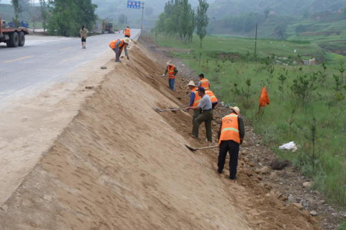 进入汛期以来,静乐公路管理段将路基边坡加固作为安全隐患治理,保障公路安全畅通的重要养护工作来抓,坚持不懈的做好强基固路工作。确保了预防性、预警性、安全性养护三到位,图为养路工正在培土加固边坡。(李永珍 摄)