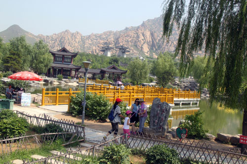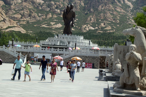 7月23日,山西省原平市天牙山景区迎来了暑期旅游高峰。省内外前来参观的游客络绎不绝,他们在这里享受着独特天涯石鼓的自然风光和二十四孝的雕塑人文景观,让孩子们在欣赏美景的同时,也感受到“孝”文化的深刻内涵,传统美德教育代代相传。(赵春晓 摄)
