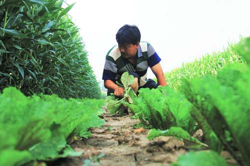 近日,原平市平地泉村民正在进行回茬菜田间管理。原平市平地泉村民2000亩回茬菜,根据市场需求,实施订单和零售交叉种植,满足不同客户的需求,使冬储菜成为土地增效农民增收的一大品牌。(吉建平 摄)