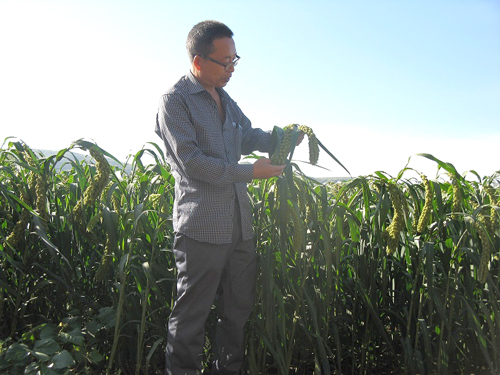 8月16日,山西省偏关县气象局农业气象服务人员,深入本县老营镇老营村,调研“张杂谷”生长的气象条件,指导农民防御自然灾害。今年,受厄尔尼诺影响,偏关县降水正常偏多,但极端天气频发,仅暴雨就下了三次,冰雹下了三到四次,大风出现了一次。可喜的是降水多“张杂谷”长势喜人,谷穗长的大而粗。农民最担心的是大风、冰雹和霜冻,三种灾害都会造成“张杂谷”减产,甚至颗粒无收。农业气象人员向农民讲解了防御三种气象灾害的方法,并提醒农民朋友每天关注偏关县电视天气预报,注意接收天气预警短信,防患于未然,夺取今年农业丰收。(彭爱国)