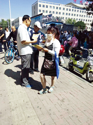 看到记者采访拍照,正在清扫纸片的环卫工李阿姨上前对记者说:“我刚把路面打扫干净,可转眼功夫,路上就又有了许多广告宣传单,尤其是每天到了上下学期间,学校门口就有近二十人守着发放传单,大部分家长接过后就直接扔在地上,每天光宣传单都能装满满一车,开学这两天,一天至少得清扫两次。”记者希望有关部门能派出专人整治乱发广告宣传单这种行为,也希望接到传单的家长或保留收集到自己衣袋,或能多走几步,将传单扔进垃圾箱。让大家齐动手,共努力,为创建我市城区国家卫生城市出力。图为9月7日中午放学时分,记者在长征路小学门口拍到的一幕(张志远/文 王菲/图)