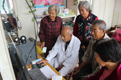 来到北义井村卫生所,不足20平米的诊疗室里已经站满了患者。医师张喜旺向高血压病人李梅兰询问病情后又为其测量了血压。紧接着,他打开区域卫生信息管理平台,拿着农村合作医疗卡在刷卡机上一刷,信息就自动提取到平台,张喜旺结合病人病情开了电子门诊处方并下药,费用直接从农合医疗卡中扣除,整个过程不到十分钟。张喜旺说,村民们大都都是奔着诊疗方便和药品范围内免费而来,这也大大缓解了村民看病难的问题。