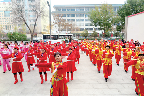 “我们举办这次活动就是为了缅怀革命先烈、弘扬长征精神。同时也让更多的老年人能够积极参加文化娱乐活动,在锻炼身体的同时也拥有一个愉快的心情。”76岁的精品锣鼓队负责人梁月娥对记者说。图为活动现场(王菲 摄影报道)