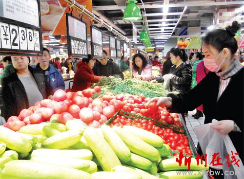 11月18日,原平市市民正在超市挑选各种新鲜蔬菜。该市大力发展高效设施农业大棚蔬菜种植业,使市民们一年四季吃上了鲜菜,同时也增加了农民收入