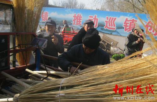 冬闲季节,河曲县农民千方百计开辟增收门路,民间形式的冬季行动正在升温。夏营村农民利用俗称“直芨”的芨芨草手工制作大扫帚,分量足、扎得牢,而且承诺“吊头一把换两把”,解决了群众为“吊头”而烦恼的后顾之忧,吸引群众前来选购。图为11月27日在巡镇赶集的群众选购“直芨”大扫帚。(贾金理 摄)