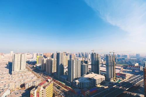1月9日,太原市空气AQI指数81,市民迎来了一个干净透亮的二级天。图为蔚蓝天空下省城南内环西街附近景色。