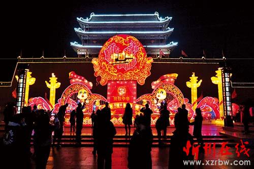 距离元宵节还有几天时间,但忻州城区北城门楼的南北广场上已展开吉祥喜庆的“中国梦”与“钱袋子”大型灯展,吸引众多市民前来观赏。(鲁明强 摄)