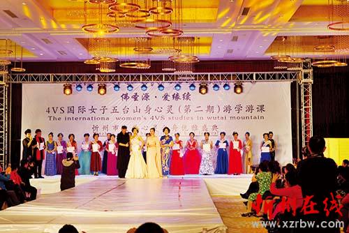 2月19日晚,“4VS国际女子五台山身心灵游学游课”暨“忻州市大美心灵之舟优雅盛典”如期举行。指导老师邱兵来到我市进行指导培训,打造忻州新时尚女性。本次活动时间为三天,按照国际化标准T台秀进行,特训营培训表演精彩纷呈,还有来自外省复训学员助兴演出。本报记者 陈宝 摄