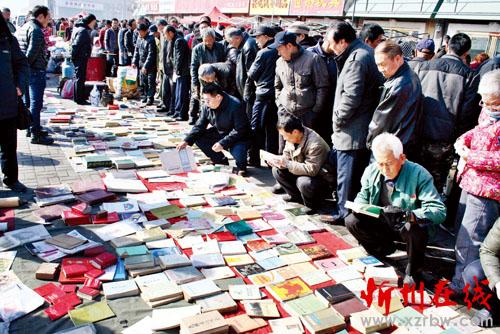 2月26日,原平市旧书市场书卷飘香,在这里挑选图书的市民络绎不绝。这里的书籍价廉物美,深得书迷们喜欢。(赵春晓 摄)