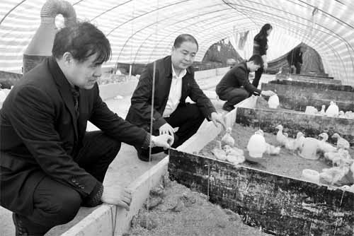 五台县神西乡苏家庄村农民曲跃堂看着自己在日光温室饲养的3200只鹅,高兴地对五台农商银行神西支行行长赵晓升说:“多亏你们支持咱科技扶贫贷5万元,预计到5月底,这批肉鹅就能出售,收入48万元应该没问题。”老曲的养殖目标是:今年养鹅1万只,出栏7000只,年产值突破100万元。金俊贤 摄