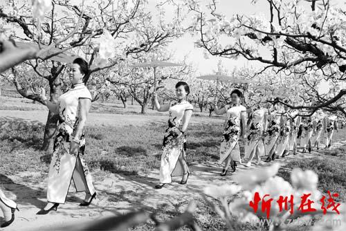 4月23日,原平市万亩梨园内,绣娘们身着旗袍,婀娜多姿,笑容灿烂,手持纨扇或油纸伞优雅前行,为游客带来了一场华美的旗袍文化盛宴,也为原平市文化艺术节增添了一抹亮色。