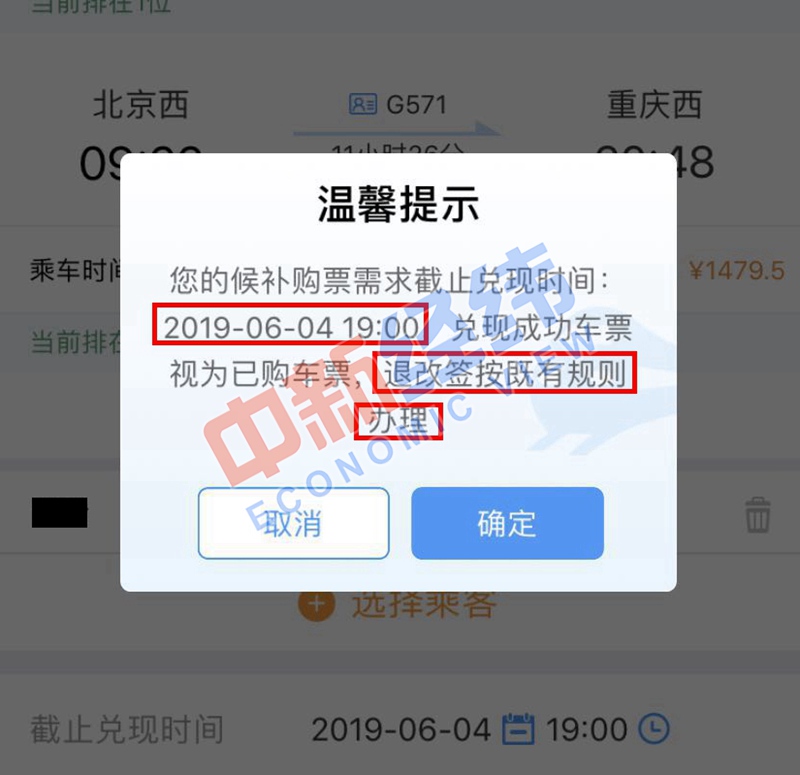 4、提交候补订单。此时会出现购票提示页面,可供大家确认截止兑现时间。