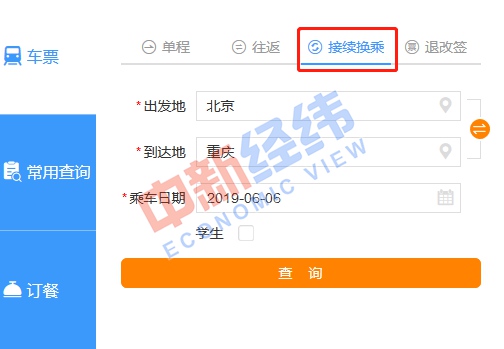 中新经纬客户端以12306网站为例,为大家演示如何“接续换乘”: