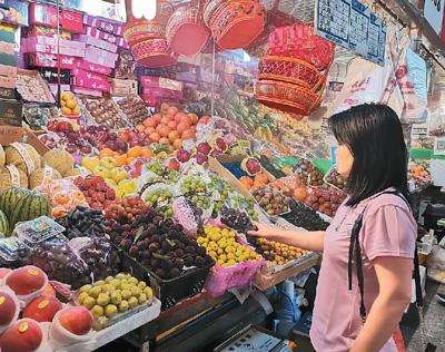 北京三源里菜市场,品种丰富的进口及国产水果吸引市民驻足选购。本报记者 孔德晨摄