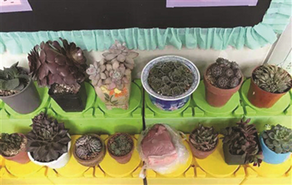 一块猪肉夹在一堆“肉肉”植物中。 扬子晚报 图