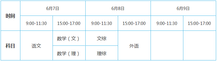 山西:2017高考时间及科目