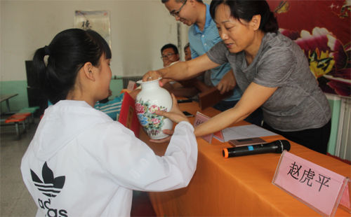 北义井乡政府付俊敏乡长在颁奖仪式上讲话中勉励学生们要学好文化课,写好中国字,做好中国人。希望在今后的校园生活中,书法绘画将成为每个学生的必修课,成为一生兴趣和爱好,成为师生共同努力的目标。(马卓宁)