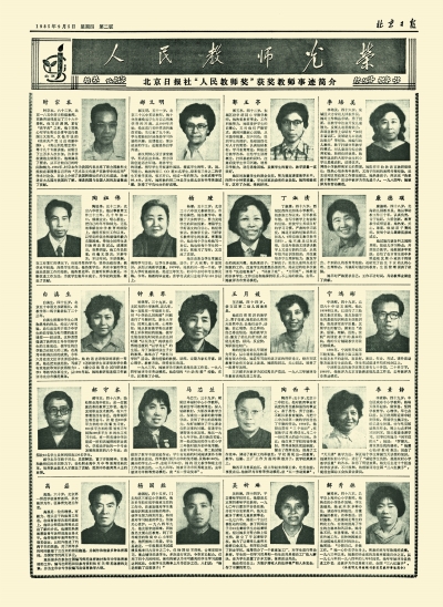 1985年,北京日报社“人民教师奖”获奖教师事迹简介