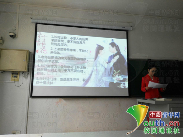 “按时出勤,不要在人间仙界来回穿梭,更不要四海八荒到处溜达;上课要带元神,不要只来个仙体;老师会把修为毫无保留的渡给你们,帮你渡考试劫;自己也要努力,争取顺利飞升上神,千万不要应劫、挂科;学好这门课,受益三生三世,收获十里桃林!”这几点要求,正是该校经济管理学院的经济学老师魏怡方对学生们在新学期提出的忠告。