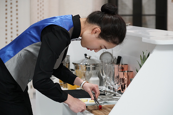 在世界技能大赛餐厅服务项目,陈亦凡在比赛休闲餐服务。 本文图均为 采访对象 供图