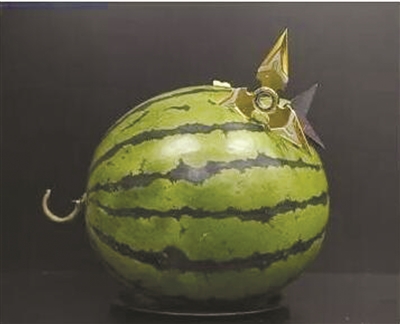 弹射玩具“威力”大,能轻易地切入西瓜。
