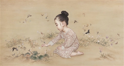 近日,青年油画家万里成了“网红”,他家有两个女儿,一个5岁叫朵朵,一个3岁叫萌萌。3年前开始,他每天画女儿。妻子给女儿穿上中式服装,盘上传统发髻,万里把女儿画进园林竹石或者山水间,与草木鱼虫相伴。