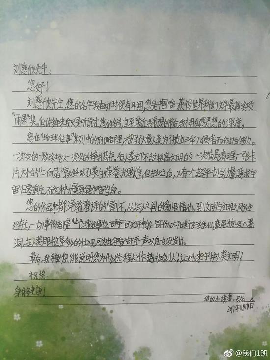 因为喜欢科幻,他给偶像刘慈欣写过一封信: