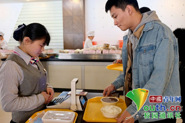 图为该校学生在食堂内使用虚拟校园卡。中国青年网通讯员 黄钰楚 供图