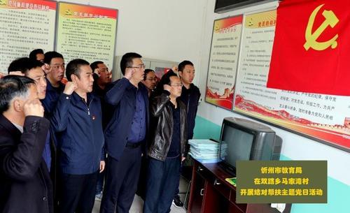 本报讯5月10日,忻州市教育局副局长郭盛、副调研员高光州与市教育系统扶贫驻村干部在静乐县双路乡马家湾村开展了“重温入党誓词,不忘入党初心”结对帮扶主题党日活动。(武 琦)