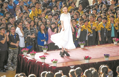 “老师,您真美!”青年女教师走上T台,将美丽与魅力在学生面前尽情绽放。这是湖北省襄阳市第五中学女教师仪表形象展示活动中的一幕。王虎/摄